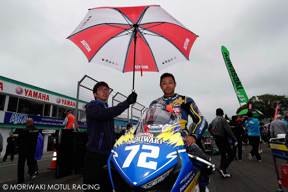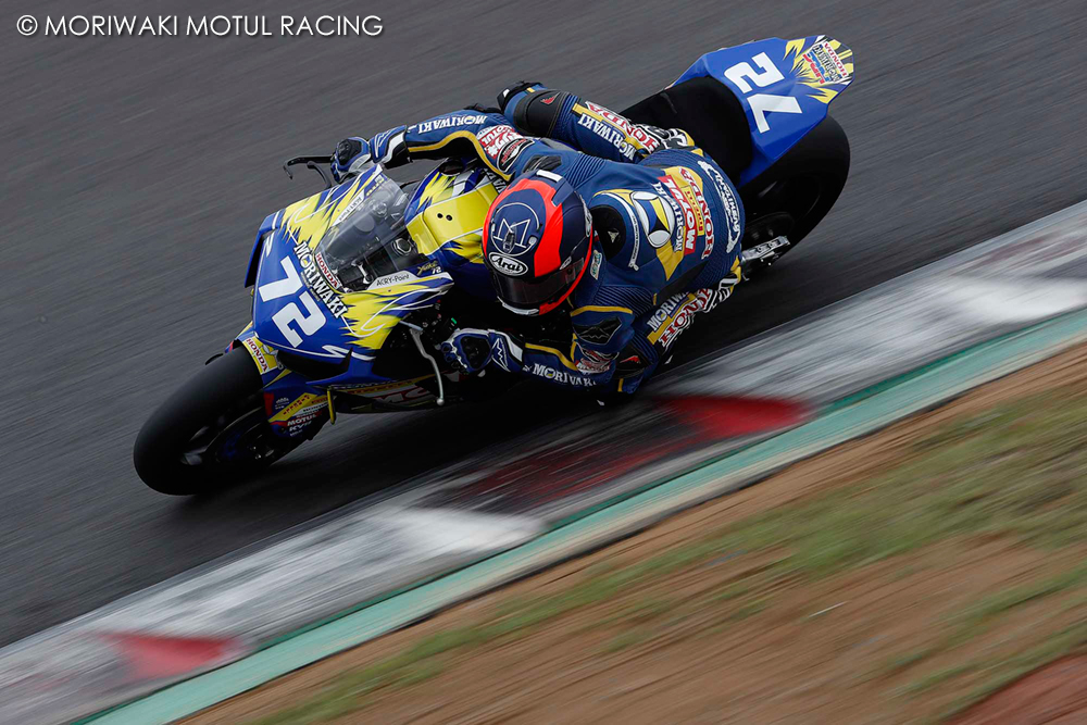 翌土曜日、朝から雨はほとんど止んでいたが、路面は前日まで降った雨の影響でウエット。この日レース1があるJSB1000クラスは、JP250、J-GP3に続き、3番目に公式予選が行われた。気温が低いためかなかなか路面は乾かなかったが、レコードライン上はほぼドライとなっていたため、スリックタイヤをチョイス。霧雨も時折パラつく中でのタイムアタックとなった。