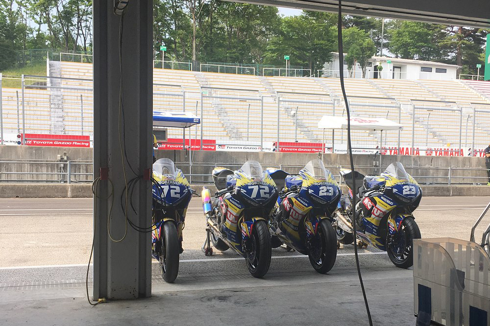 事前テストでは、右肩の再手術をしてから初めて1000ccのマシンをライディングすることもあり、調子を見ながらペースを上げて行く。昨年は雨だったこともあり、ほぼデータのないところからのスタートとなっていたため、タイヤを選別しマシンセットを進めていった。