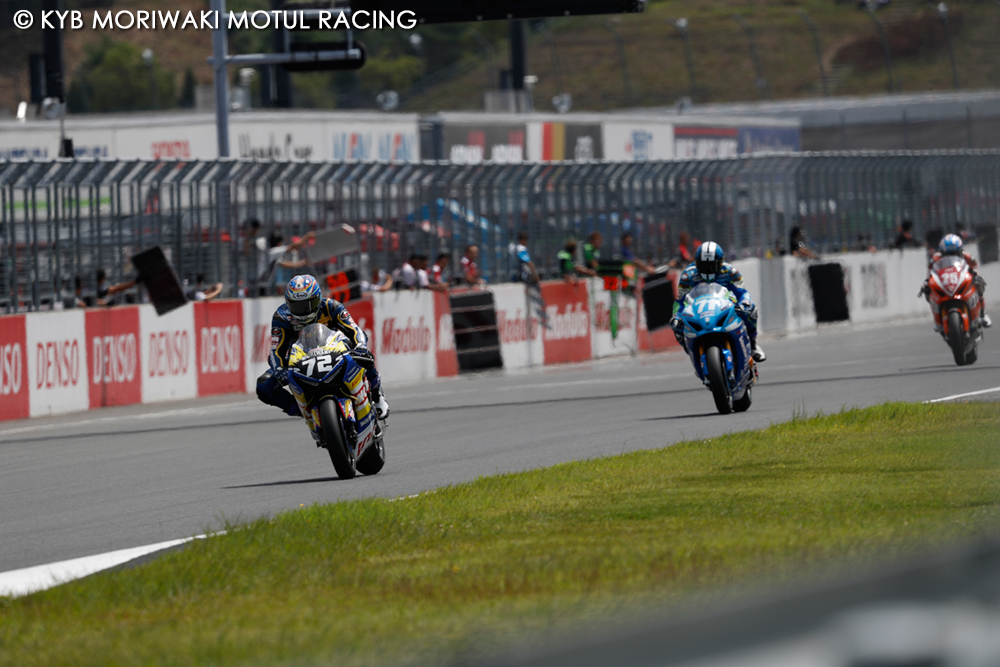 レース終盤になって前のライダーとの差が縮まってくるが、フロントが厳しい状況だった。残り5周でチームメイトの清成選手にかわされつつ、2台連なって前のライダーに迫って行く。ラストラップでは背後に迫るが、かわすまでには至らずチェッカーフラッグを受けたのだった。