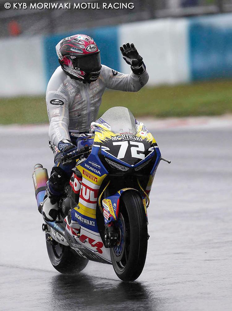 高橋裕紀「事前テストではウエットで多くの時間を走ることができたので自信はありましたが、まさかポールポジションを獲れるとは思っていませんでした。チーム、Honda、KYB、ピレリタイヤと、すべてがうまく噛み合った結果だと思います。すごく安心して攻められるバイクだったので、すべっても怖くありませんでしたし、ドライみたいに攻めて行くことができました。レースができなかったことは残念でしたが、中止は正しい判断だったと思います。次回は早くも最終戦鈴鹿なので、今回の流れを持ち込んでいいレースにしたいです」