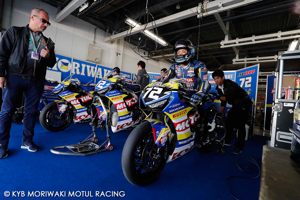 モリワキは、今回の最終戦に向けて新しいスイングアームを投入。木曜日の特別スポーツ走行で裕紀はまず、以前のタイプと比較テストを行っていた。スイングアームは以前のタイプを使う事を選択し、タイヤテストはチームメイトの清成選手と手分けして進めて行った。