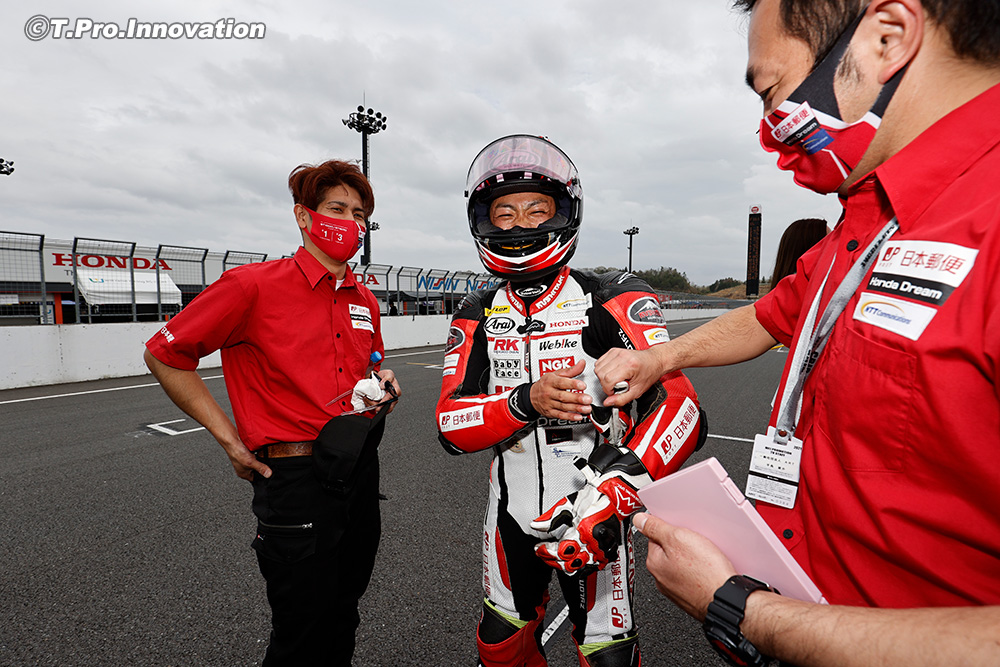 裕紀は、3月の2週目に行われたル・マンテストに参加したため、2週間の自主隔離期間があり、全日本公開テストは走ることができなかった。そのためチームは、レース前週の週末にあったスポーツ走行で裕紀を走らせ、全日本ST1000仕様のCBR1000RR-Rに慣れる作業を行った。乗り換えがうまく行くようにシートやハンドル、ステップなどのポジションもEWC車に合わせたものを用意。チームの心配を余所に、一般のライダーも走っている中、裕紀は好タイムをマークしていた。