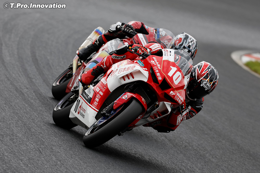 すでに何度も転倒しそうになっており、特にフロントは限界を超えていたこともあり、着実にゴールすることを選び3位でチェッカー。またも悔しいレースとなったが、ライバルとの差は縮まっている。最終戦鈴鹿で、この悔しさを晴らすことを目指す。